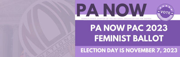 The Pennsylvania NOW PAC happily supports each of the candidates on our 2023 General Feminist Ballot and we are proud of their commitments to advocating on behalf of our mission and supporting the communities we serve. Make certain to vote for these candidates by mail-in ballot or at the polls on Tuesday, November 7, 2023.…